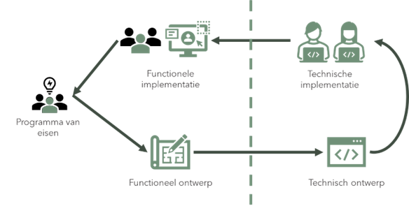 We delen een project in meerdere stappen op. Waarbij iedere stap een helder beschreven stuk functionaliteit wordt toegevoegd aan het informatiesysteem. Voor iedere stap doorlopen we onderstaande fases.